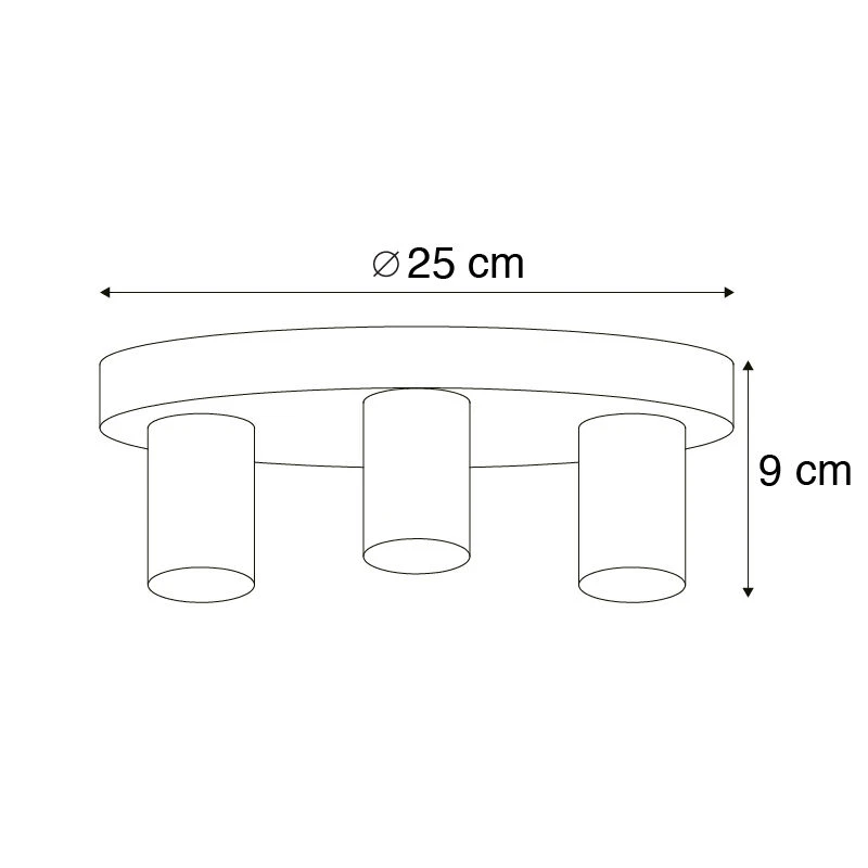 Die Deckenleuchte hat einen Durchmesser von 25 cm und eine Höhe von 9 cm.
