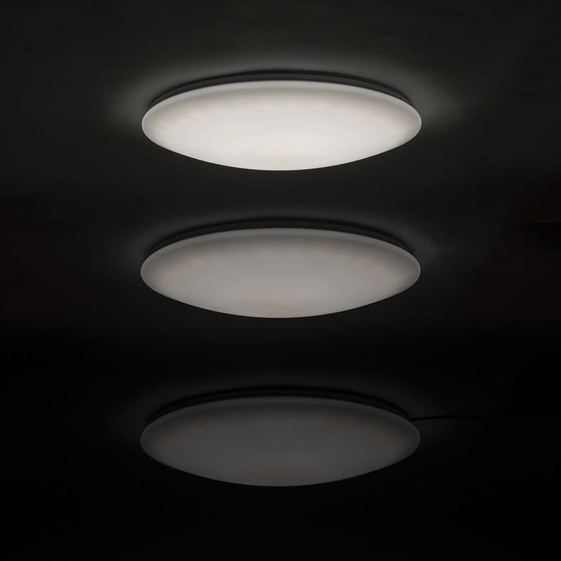 Die Lampe hat einen Durchmesser von 60 cm und eine Höhe von 10 cm. Die Montageplatte hat einen Durchmesser von 58 cm. Die Lampe hat eine Lichtquelle mit 90 Watt, 2700-6500 Kelvin und 30000 Brennstunden. Natürlich ist die Lampe dimmbar, so dass sie bei 5500 Lumen nicht immer mit voller Leistung arbeiten muss.