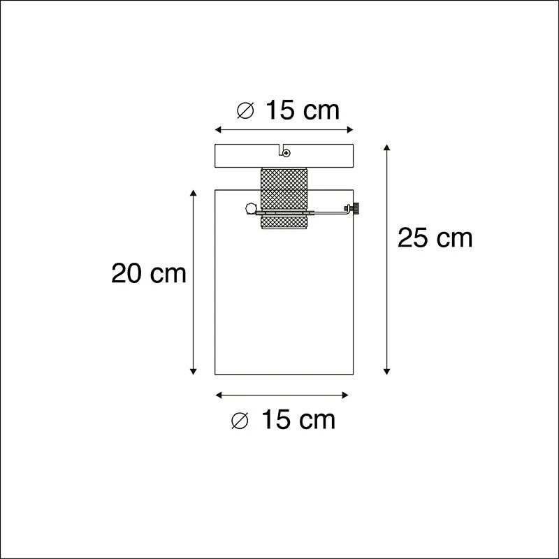 Die Lampe hat eine Gesamthöhe von 25 cm. Die Montageplatte hat einen Durchmesser von 15 cm.
